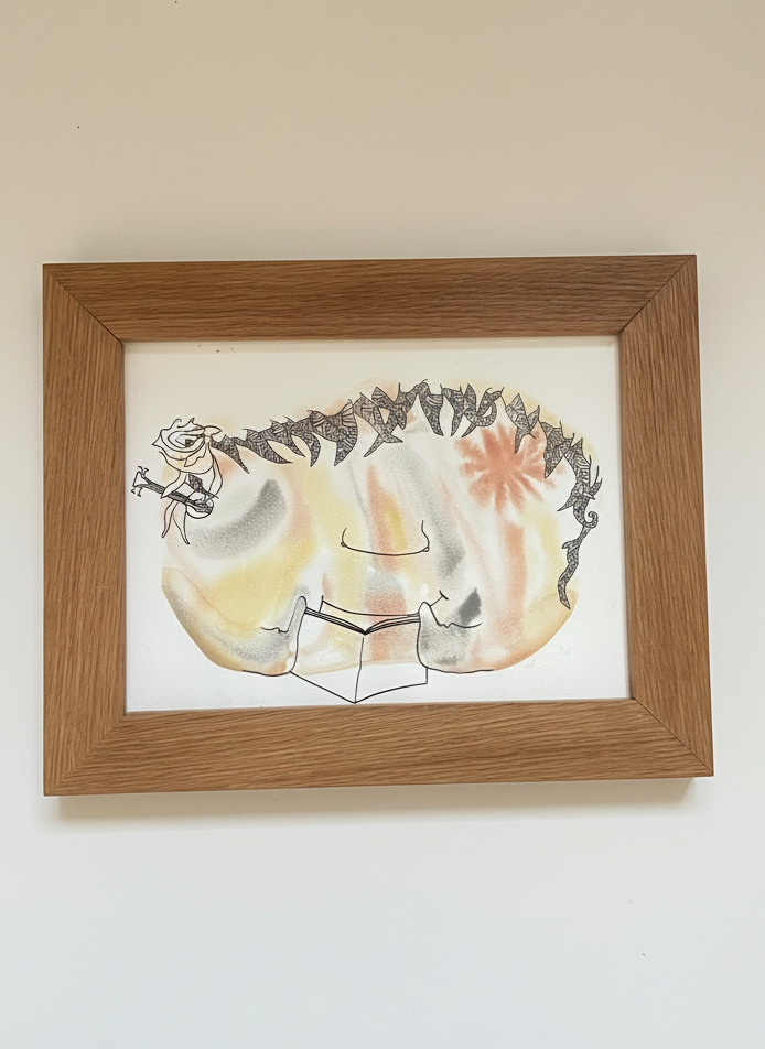 Original watercolor in handmade oak frame, 9x12”